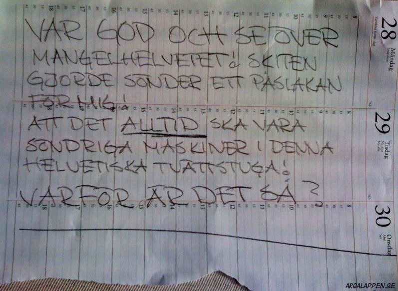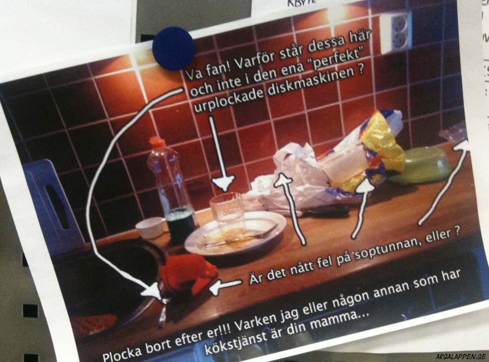 Arga Lappen är en blogg som frossar i de där små subtila budskapen vi människor kommunicerar med i köket, i förrådet, i tvättstugan, ja i princip överallt där vi delar utrymme och umgås (eller inte) med andra.