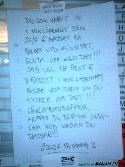 Arga Lappen är en blogg som frossar i de där små subtila budskapen vi människor kommunicerar med i köket, i förrådet, i tvättstugan, ja i princip överallt där vi delar utrymme och umgås (eller inte) med andra.