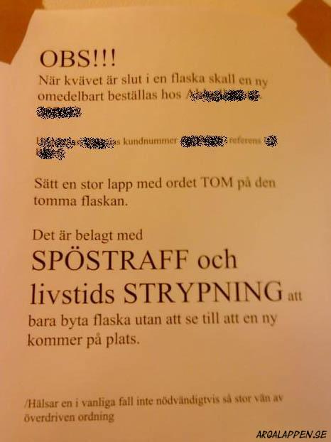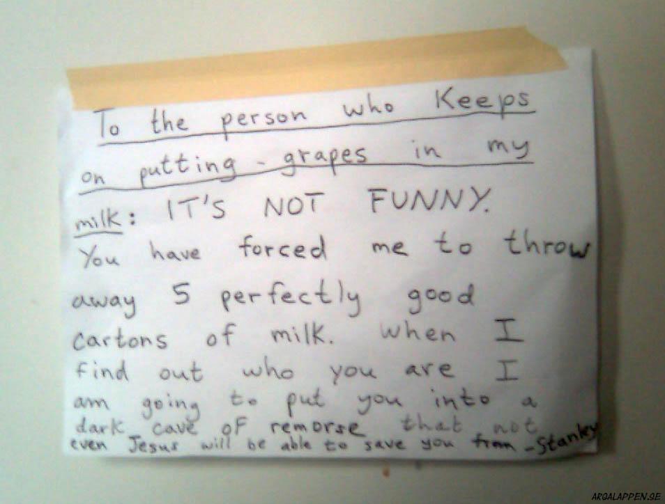 Arga Lappen är en blogg som frossar i de där små subtila budskapen vi människor kommunicerar med i köket, i förrådet, i tvättstugan, ja i princip överallt där vi delar utrymme och umgås (eller inte) med andra.