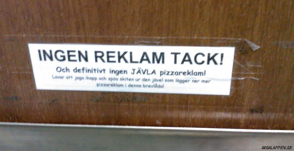"...Lovar att jaga ikapp och spöa skiten ur den jävel som lägger ner mer pizzareklam i denna brevlåda."