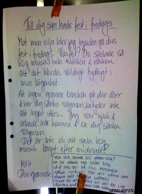 Det ska vara tyst efter 23! För samtliga hyresgäster gäller att denna tid e´ lag