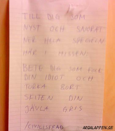 Arga Lappen är en blogg som frossar i de där små subtila budskapen vi människor kommunicerar med i köket, i förrådet, i tvättstugan, ja i princip överallt där vi delar utrymme och umgås (eller inte) med andra.