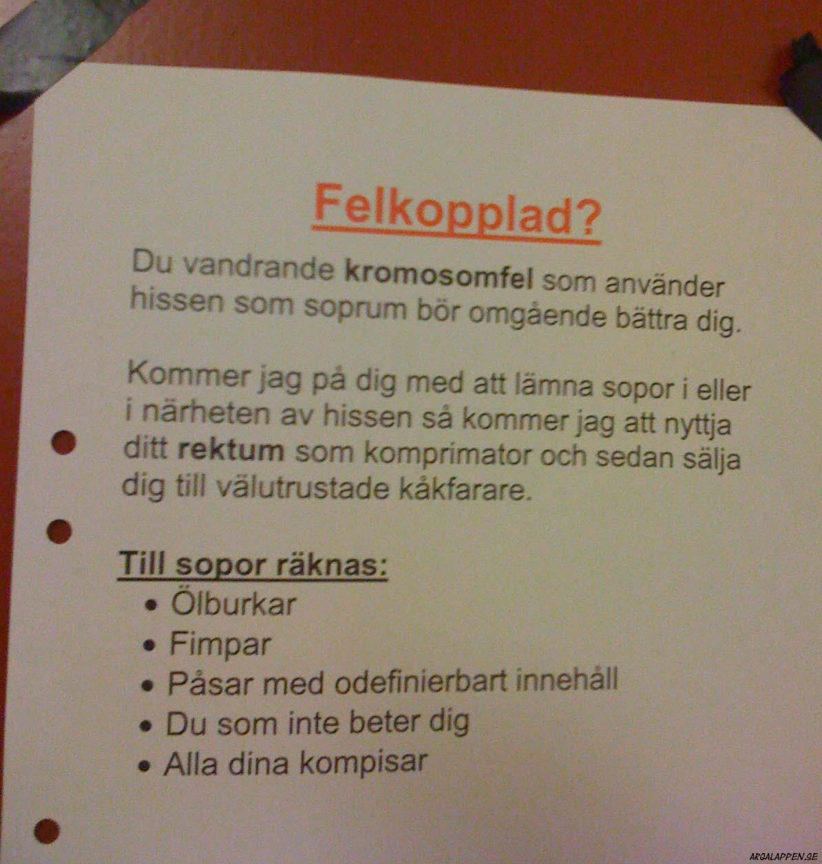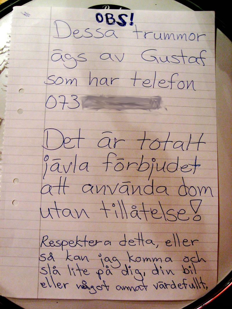 "Till dig som går för nära min ringklocka: Sluta med det. Du väcker mig! Den sätter i gång av vinddraget när du går förbi!"