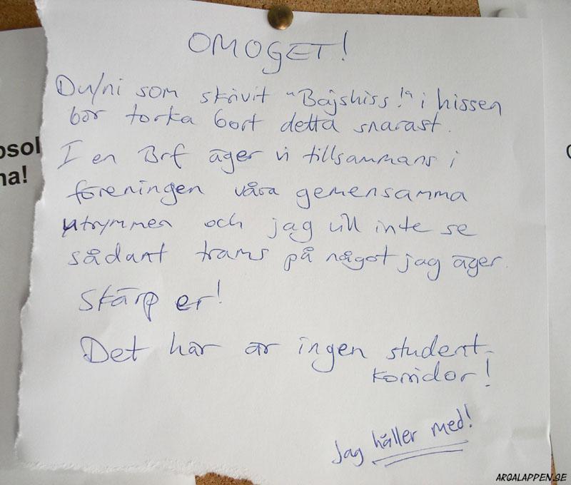 Arga Lappen är en blogg som frossar i de där små subtila budskapen vi människor kommunicerar med i köket, i förrådet, i tvättstugan, ja i princip överallt där vi delar utrymme och umgås (eller inte) med andra.