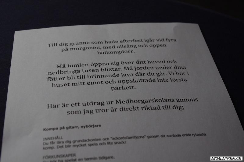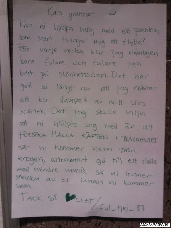 Notera att lappskrivaren kostat på sig en plastficka för att säkerställa att meddelandet går fram i händelse av nederbörd.