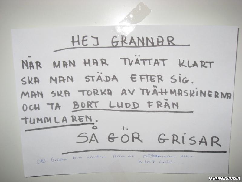 Arga Lappen är en blogg som frossar i de där små subtila budskapen vi människor kommunicerar med i köket, i förrådet, i tvättstugan, ja i princip överallt där vi delar utrymme och umgås (eller inte) med andra.