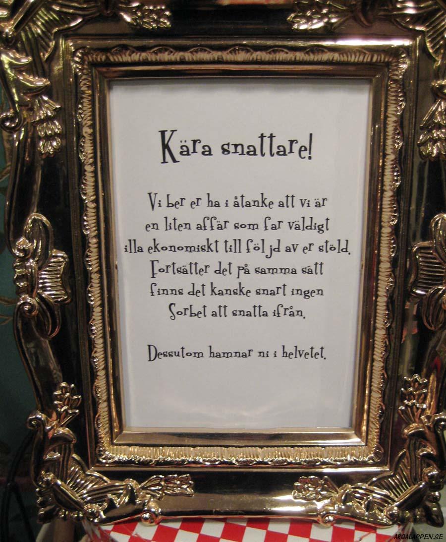 "Vi ber er ha i åtanke att vi är en liten affär som far väldigt illa ekonomiskt till följd av er stöld. Fortsätter det på samma sätt finns det kanske snart ingen [affär] att snatta från.