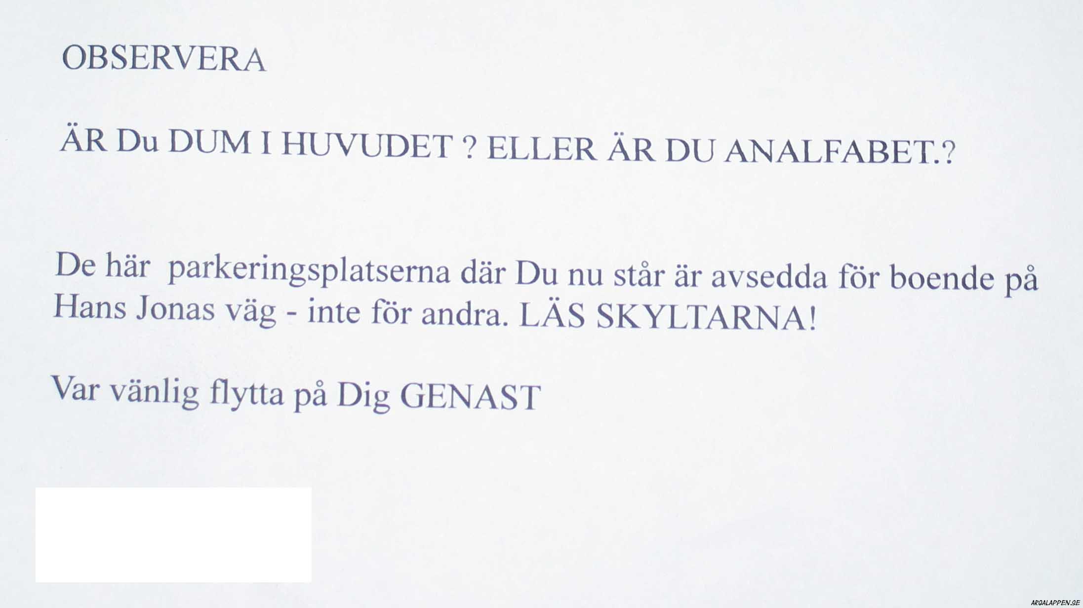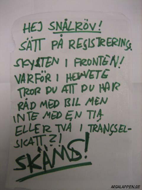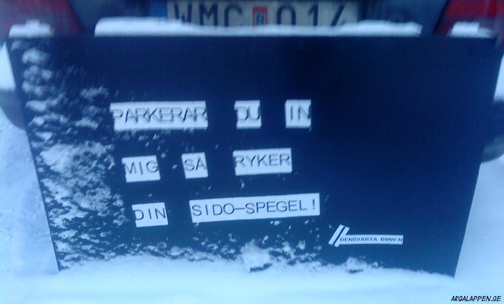 "BRA PARKERING FITTANSIKTE. FLYTTA INNAN BILEN BLIR SÖNDERSLAGEN"