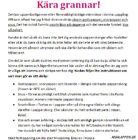 Arga Lappen är en blogg som frossar i de där små subtila budskapen vi människor kommunicerar med i köket, i förrådet, i tvättstugan, ja i princip överallt där vi delar utrymme och umgås (eller inte) med andra.