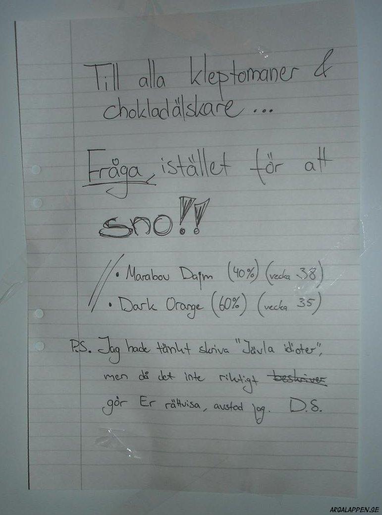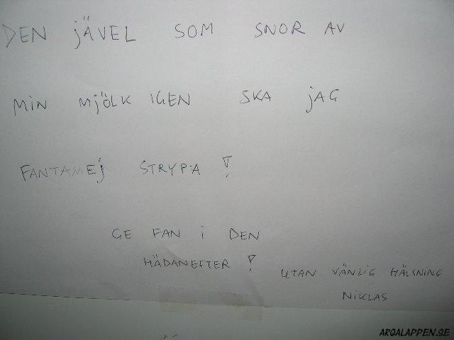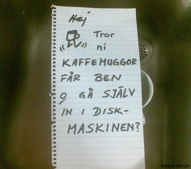 Arga Lappen är en blogg som frossar i de där små subtila budskapen vi människor kommunicerar med i köket, i förrådet, i tvättstugan, ja i princip överallt där vi delar utrymme och umgås (eller inte) med andra.
