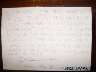 Det är så härligt att se hur ett enda litet stavfel så fullständigt kan ta bort all pondus ur en arg lapp. Beautiful!