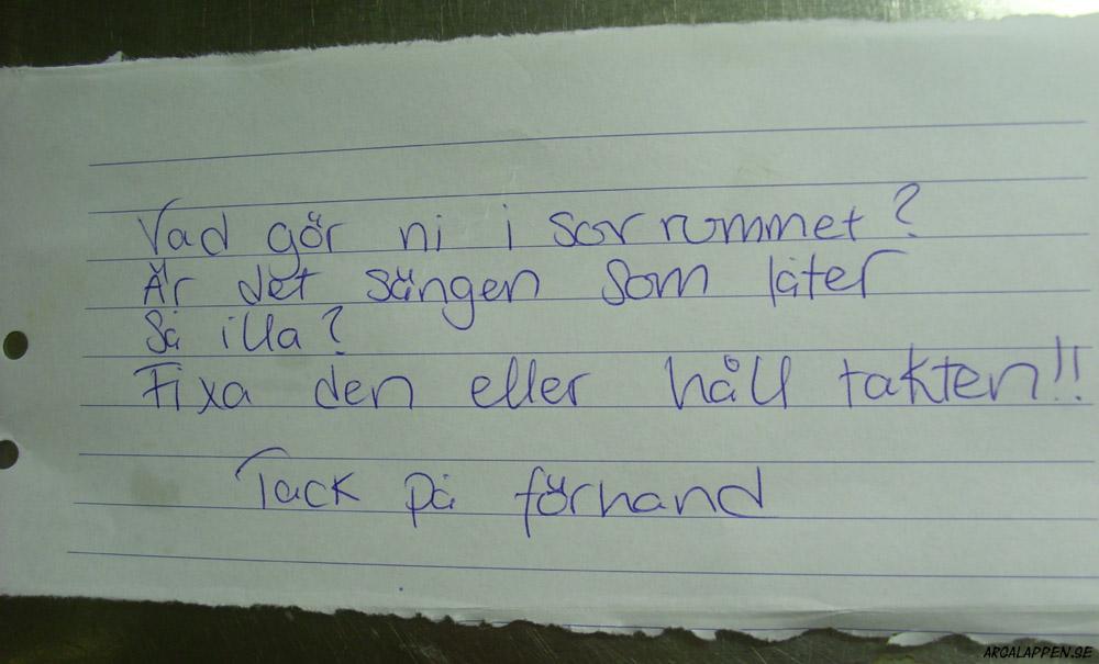 (Klicka på fotot för en läsbar förstoring av denna underbara lapp)