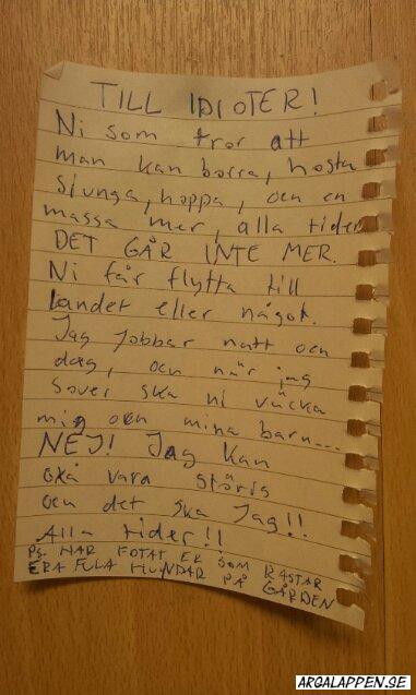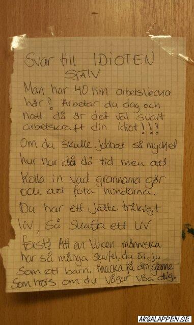 Svar till: http://www.argalappen.se/trapphuslappar/994/till-idioter/