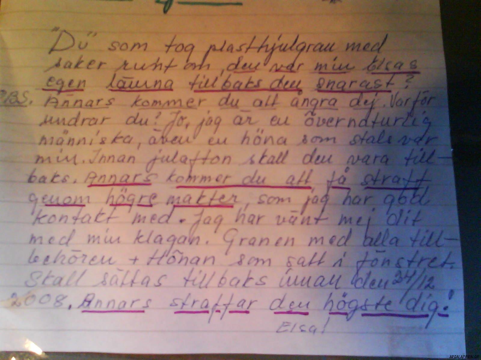 Till saken hör att lappen hittades på Östermalm i Stockholm.