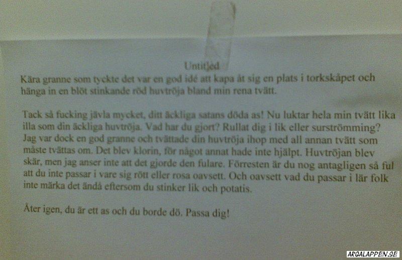 Arga Lappen är en blogg som frossar i de där små subtila budskapen vi människor kommunicerar med i köket, i förrådet, i tvättstugan, ja i princip överallt där vi delar utrymme och umgås (eller inte) med andra.