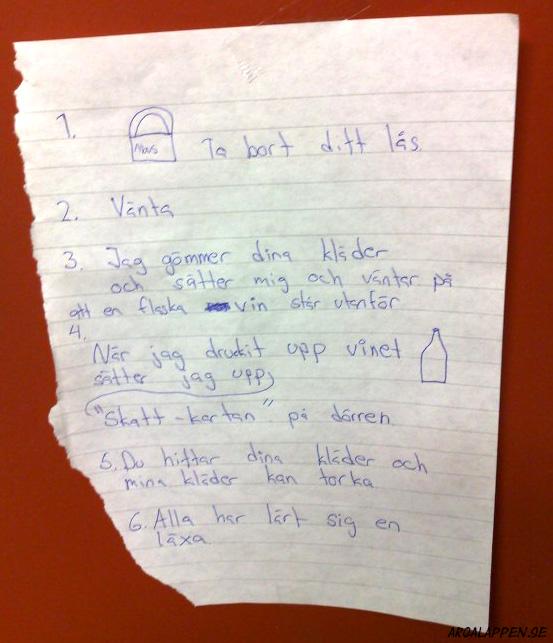 Bakgrund: En av tvättstugezombierna har tagit för vana att sätta hänglås på torkrummet samt att allt som oftast inte plocka bort detta inför nästa tvättid. Efter den vanliga dosen sura anmärkningar rinner bägaren slutligen över för Svenne Banan och följande motattack sätts i verket: