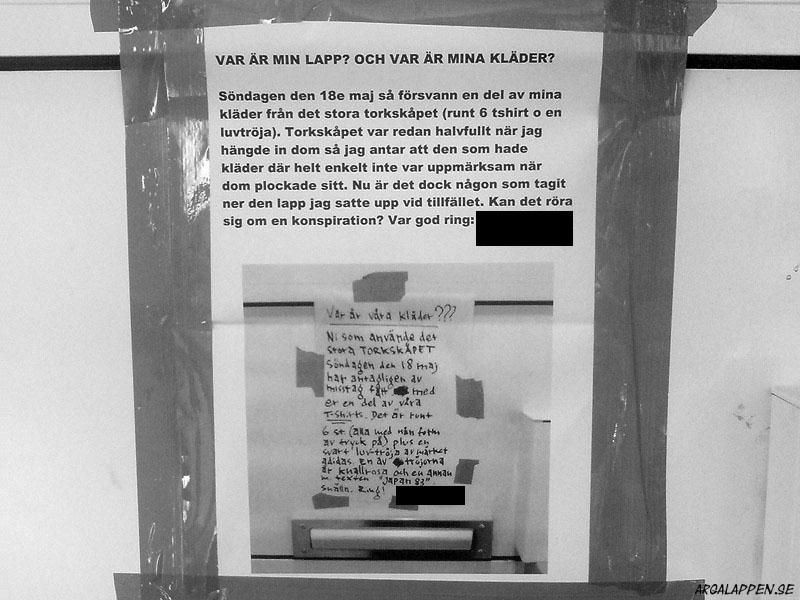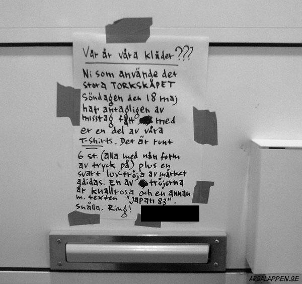 Det som är skönast med denna lapp är nog den sakliga tonen, trots den tämligen grova förseelsen som påpekas. Det skulle lika gärna kunna stå "glöm inte att rengöra filtret från ludd".